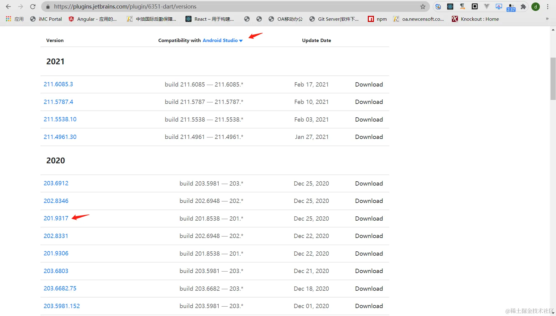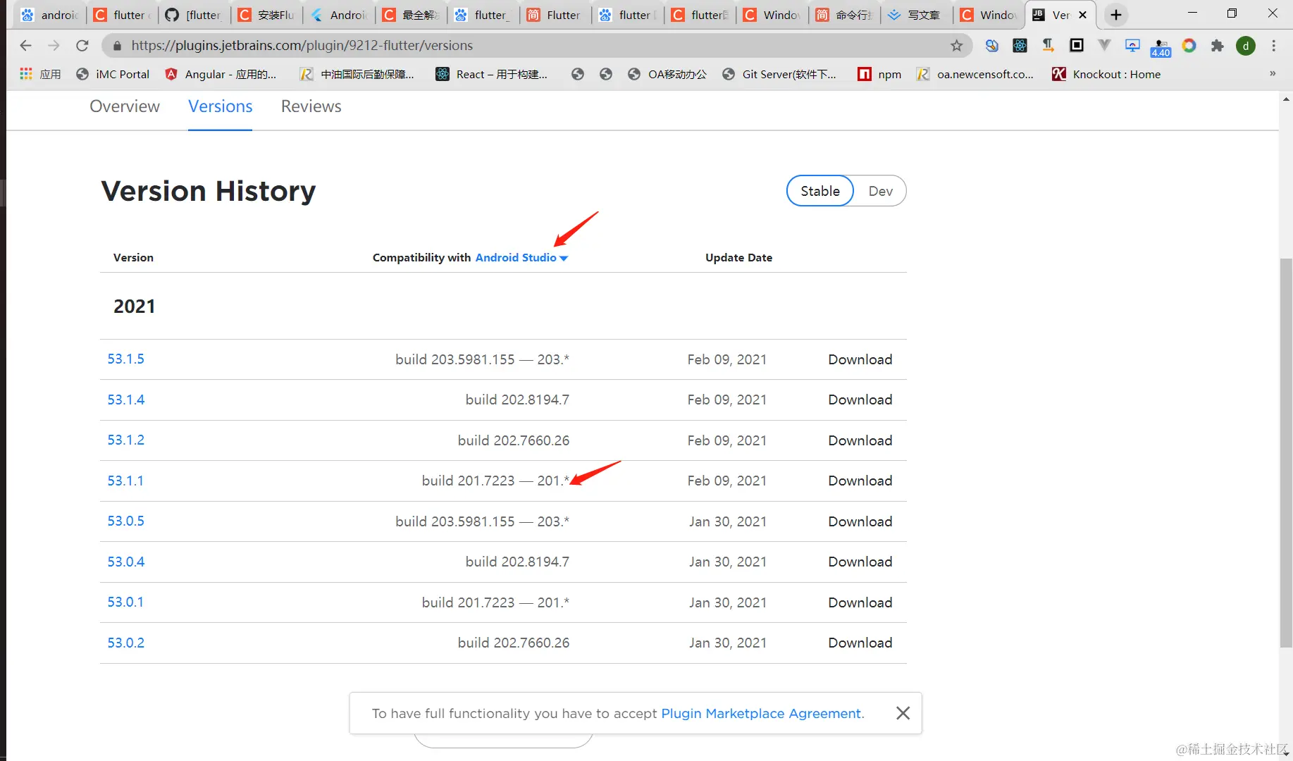 我是安装的如下版本,在android studio help -> about 选项可查看该信息,记住#AI-后面的数值,我的是201版本,后续安装flutter插件会用到。