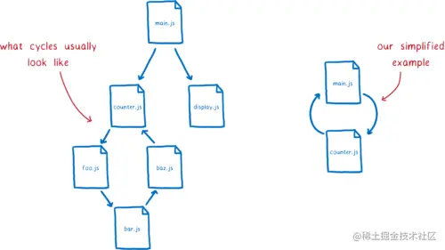 在循环依赖中,你有一个循环的图,在实际代码中可能是一个长的循环,但是现在我们为了介绍原理,就使用一个短的循环案例。