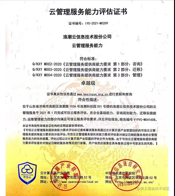 近期,中国信息通信研究院重磅发布了可信云最新评估结果,浪潮云通过层层评审,成功获得“可信云云管理服务能力评估卓越级证书(最高等级)”,其专业的云管理服务能力再次获得权威认可。