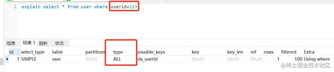日常开发写SQL的时候,尽量养成这个好习惯呀:写完SQL后,用explain分析一下,尤其注意走不走索引。