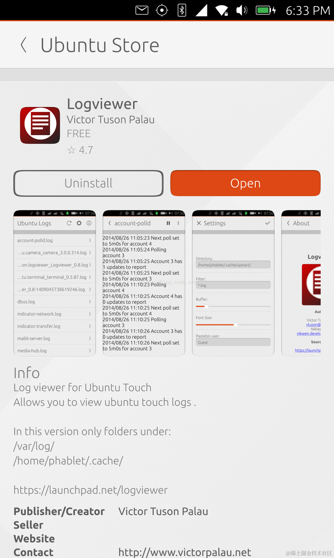 我们知道在Android开发过程中,我们发现CatLog非常有用,它直接把很多的调试信息显示到我们的调试窗口中.在Ubuntu开发过程中,我们也可以使用到一个同样的一个工具.这个工具的名字叫做LogViewer.它的源码在:victorpalau.net/tag/ubuntu/.请注意:这个应用的apparmor文件: