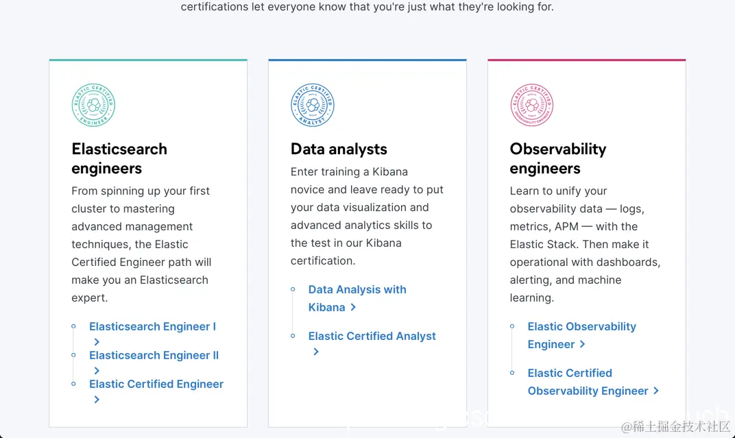 目前 Elastic 认证证书分为三类: