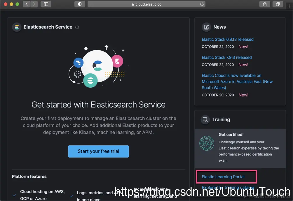 对于一些开发者来说,如果你想参加 Elastic 的一些培训的话,那么你可以通过如下的方式来得到所需要的培训。你首先打开网站 cloud.elastic.co: