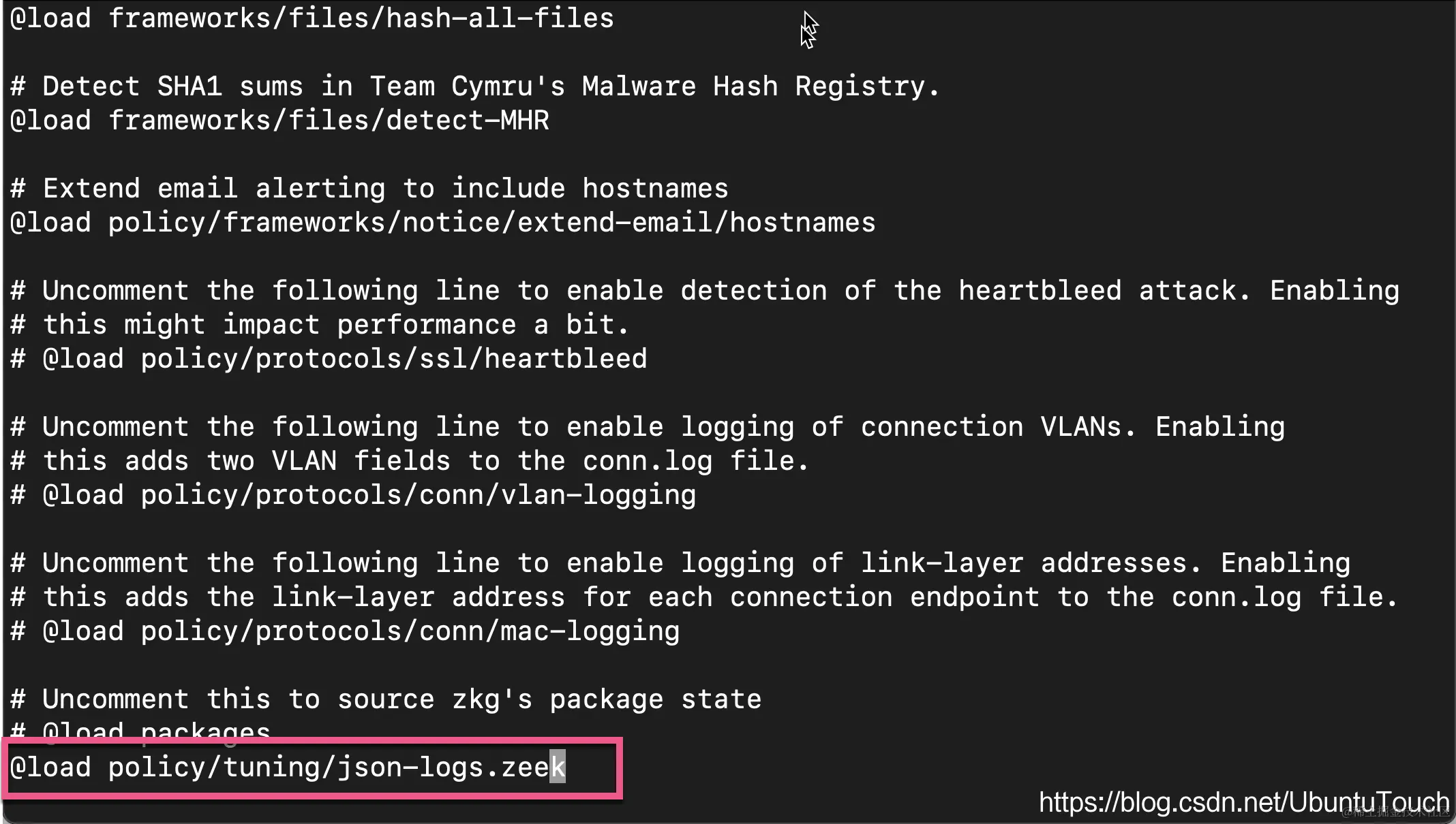 保存好文件,并重新启动 zeek: