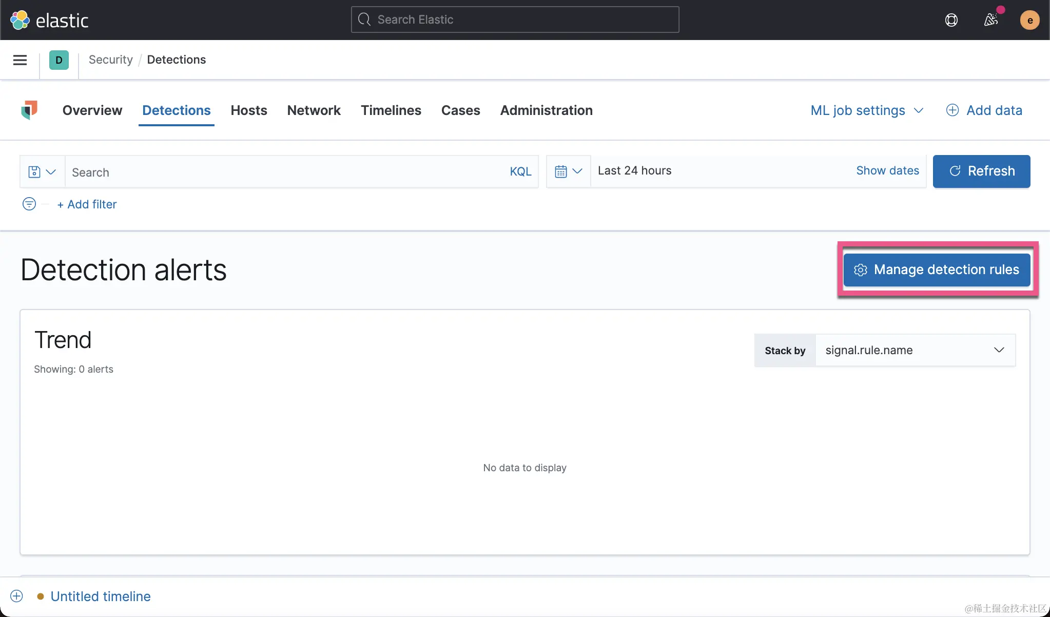 一旦完成上述所有步骤,并将数据提取到 Elasticsearch 中,你可能会注意到仍然无法创建检测。