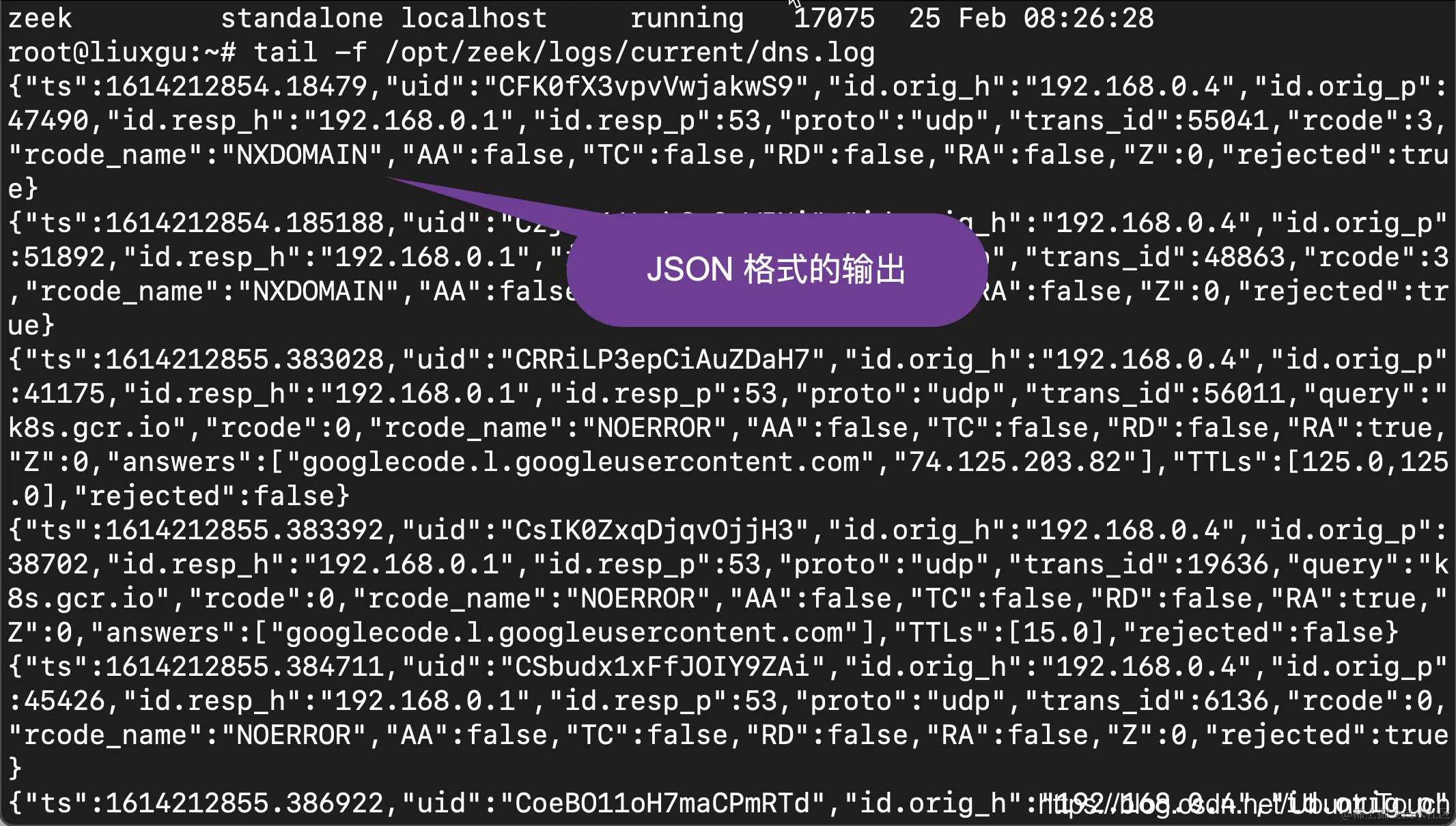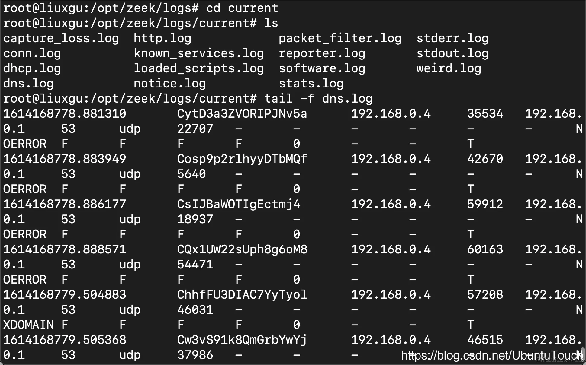 tail -f /opt/zeek/logs/current/dns.log
