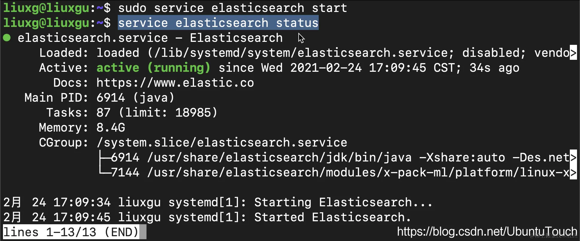 sudo service elasticsearch start