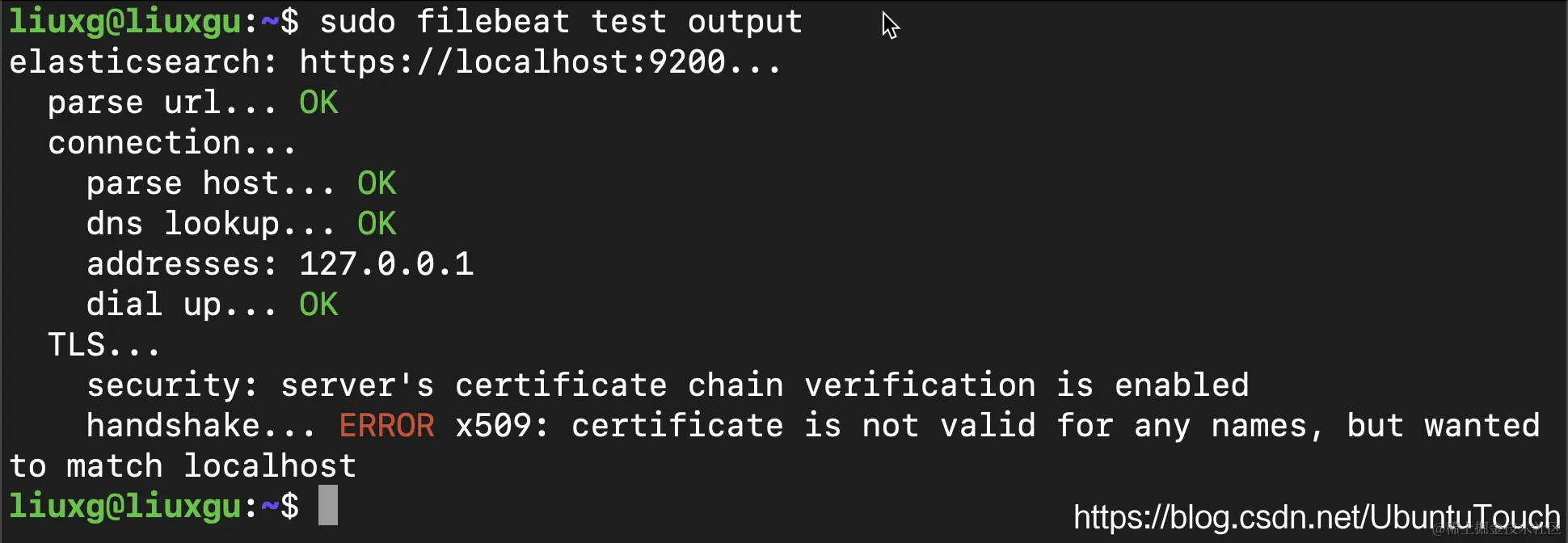 现在,你可以通过运行以下命令来检查 FileBeats 是否可以连接到 Elasticsearch。 一切都应该返回“OK”。