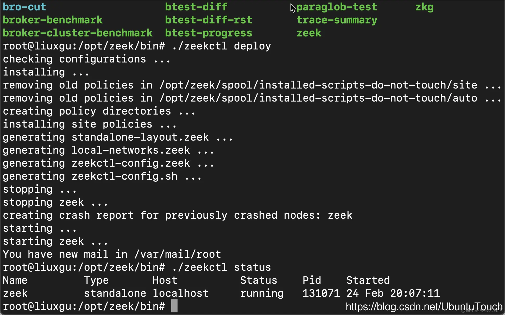 现在,我们准备运行下面的命令来部署 Zeek。我们需要在 root 账号下运行: