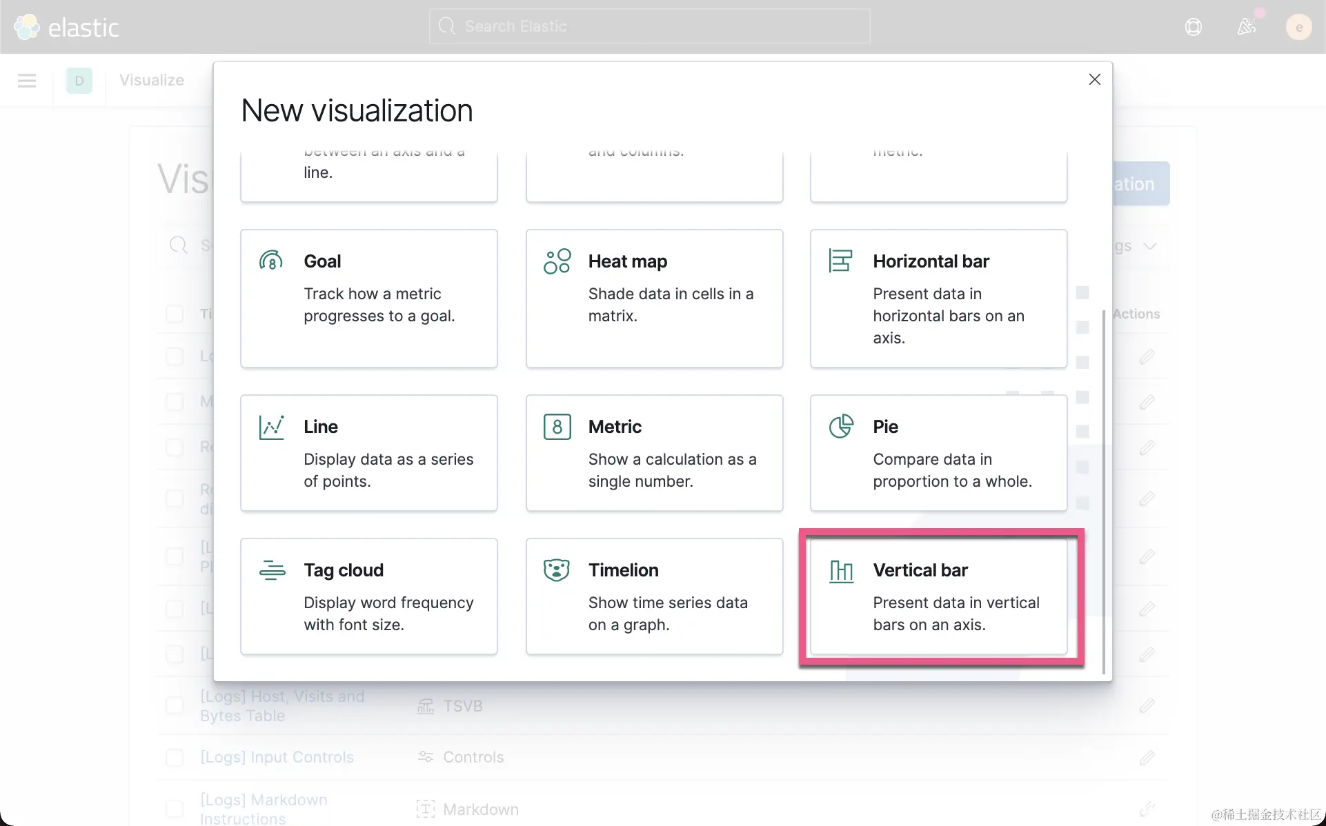 保存当前的 Dashboard。当我们点击可视化的空白部分时,我们可以看到一个菜单: