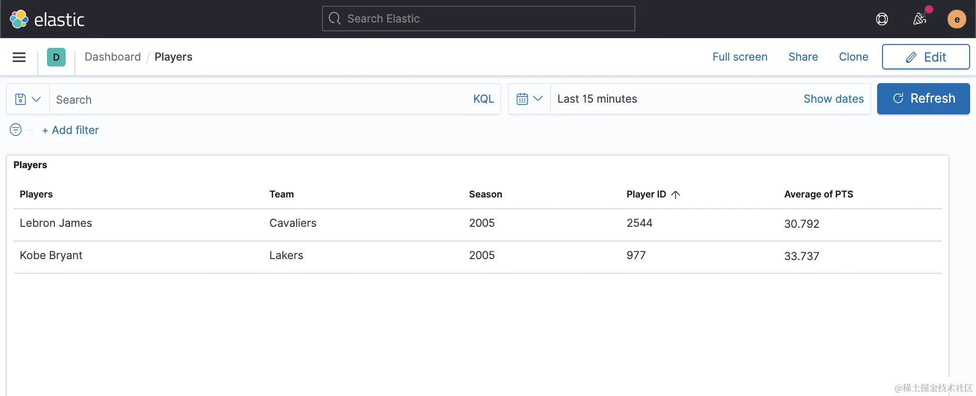 我们可以使用 Lens 来创建一个如上所示的 table。我们把这个 table 放进一个 Dashboard 之中去: