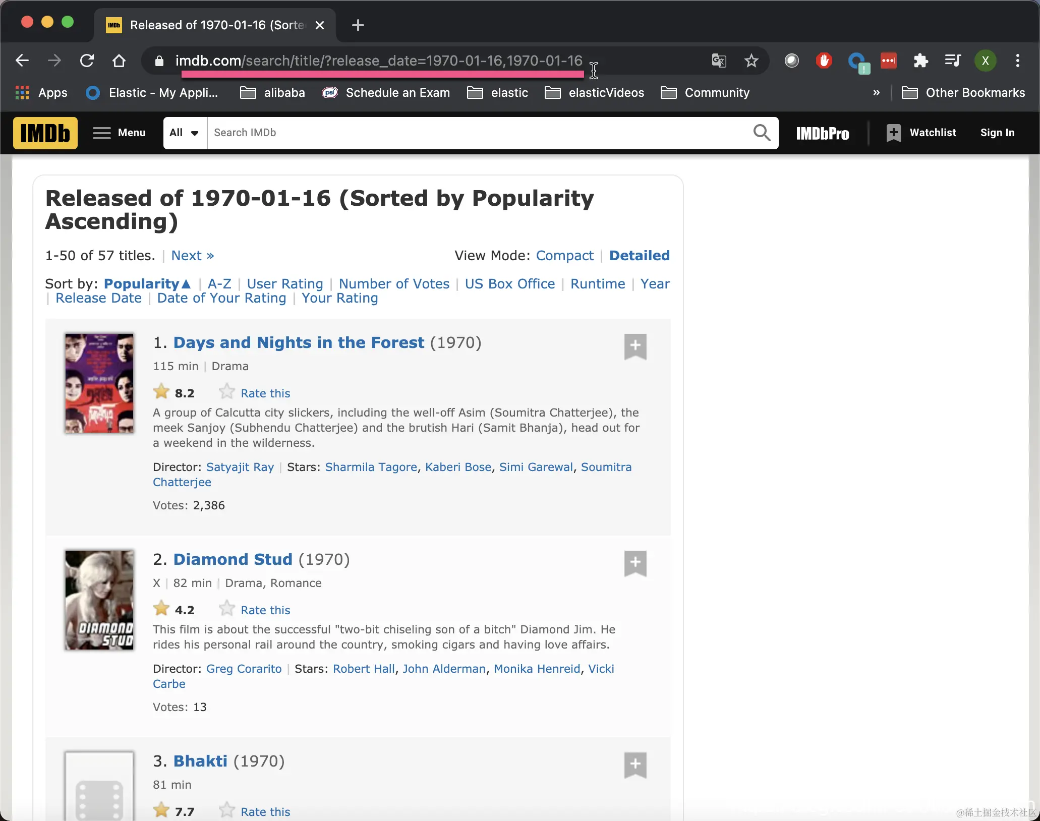 从上面我们可以看到在 IMDB 的页面上能找到相应的查询结果。在地址栏中,我们可以看到显示的时间范围。