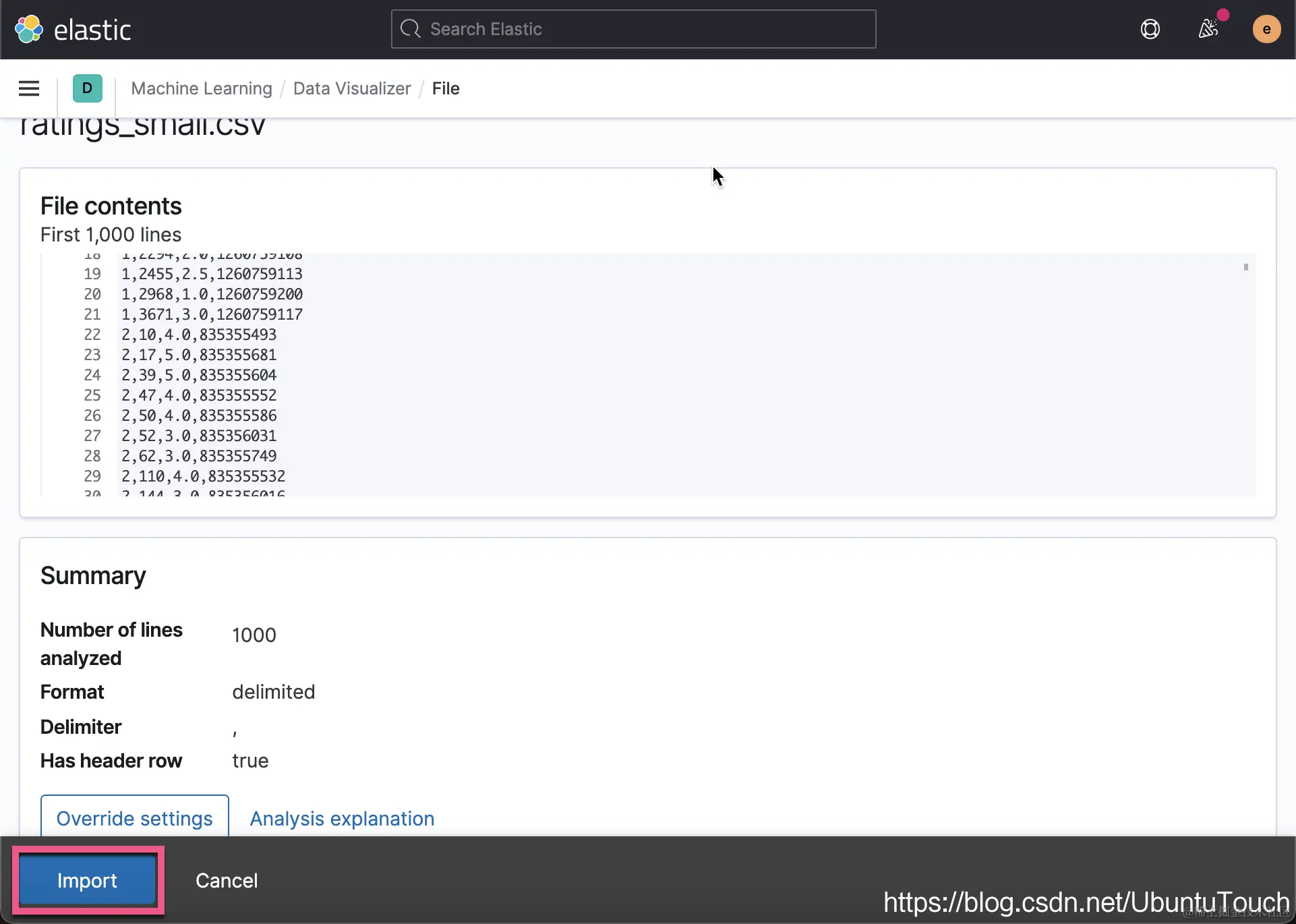 我们选择刚才已经下载的 ratings_small.csv 文件。