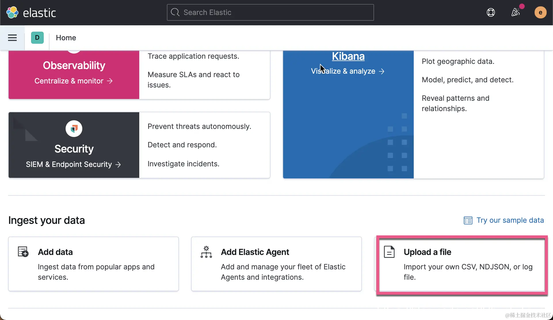 我们可以通过如下的方式来把数据导入到 Elasticsearch 中。