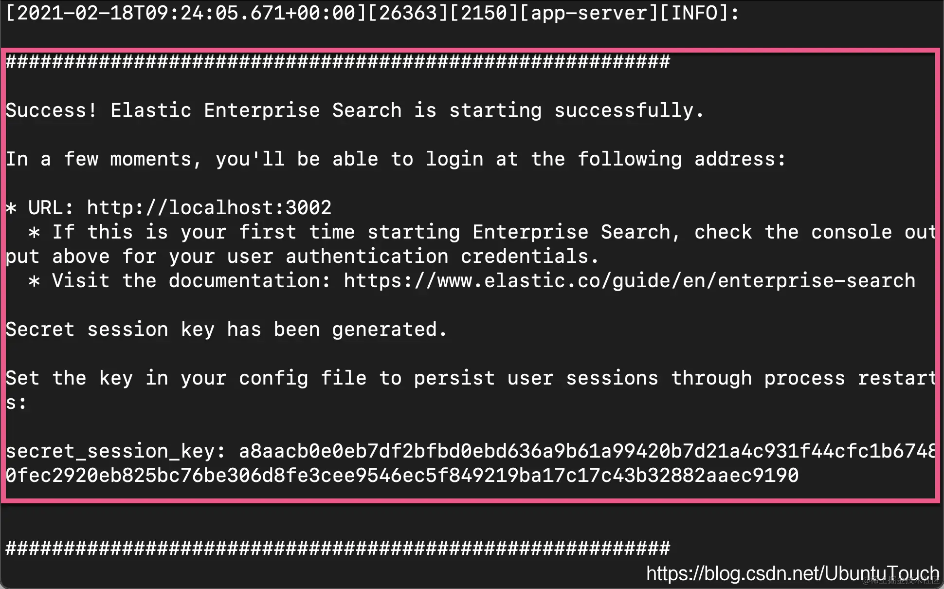 我们把上面的这个 key 添加到 config/enterprise-search.yml 文件中: