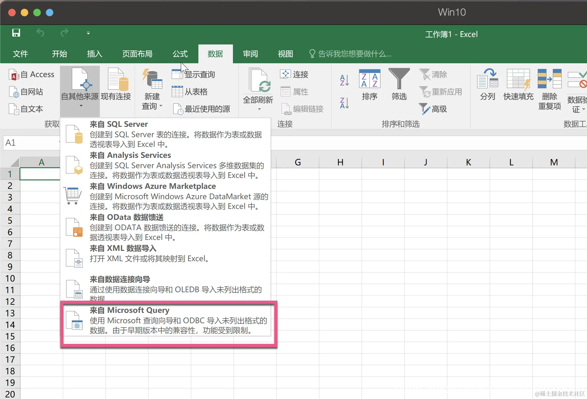 我们接下来从 Elasticsearch 导入数据到 Excel 中来。我们首先打开 Excel: