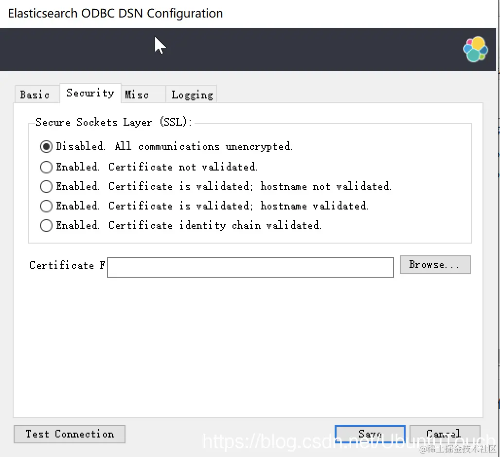点击 Test Connection。如果我们看见 Connection Success,则表明 ODBC 和 Elasticsearch 的连接是没有任何问题的。