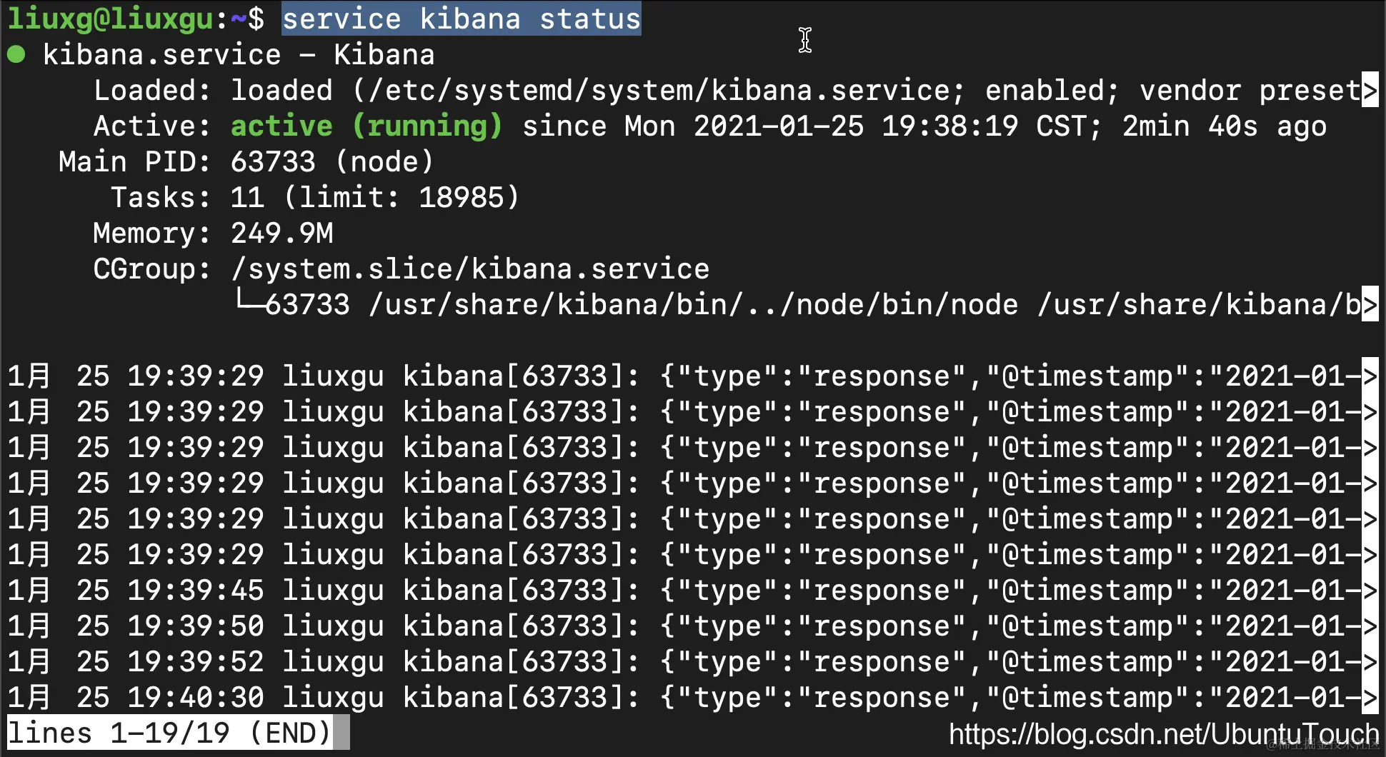 service kibana status