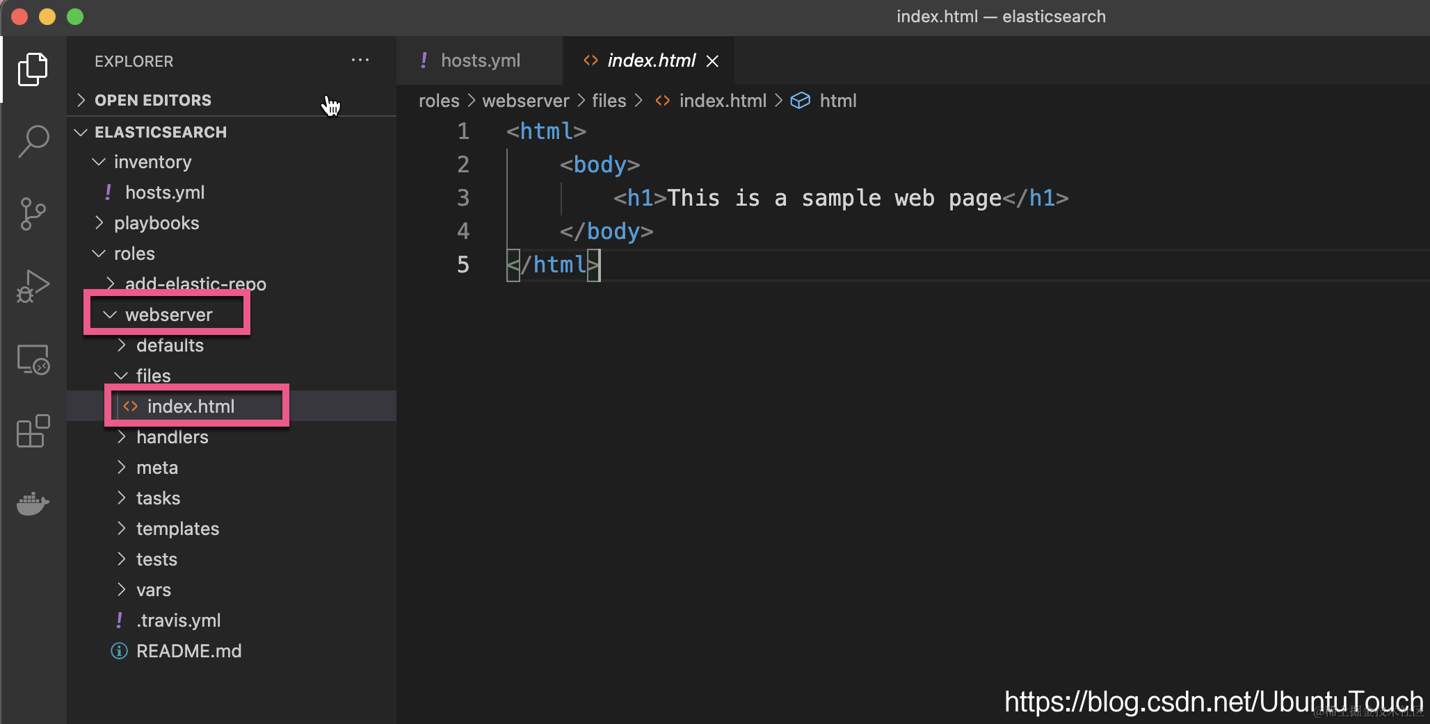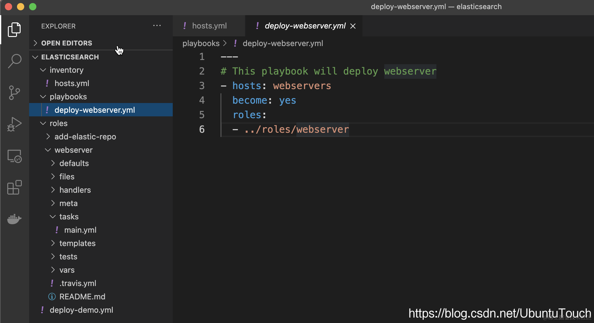 接下来,我们在 playbooks 目录下创建一个叫做 deploy-webserver.yml 的文件: