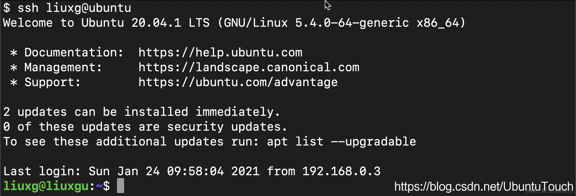 Now try logging into the machine, with: "ssh 'liuxg@ubuntu'"
