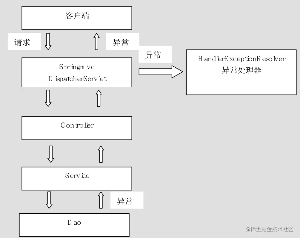 系统的 dao、service、controller 出现都通过 throws Exception 向上抛出,最后由 springmvc 前端