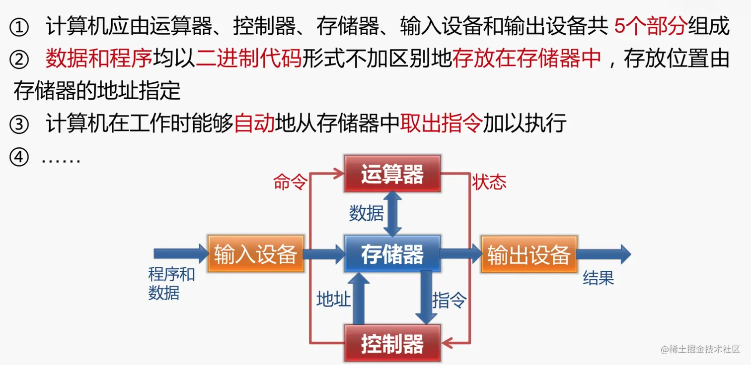 - 计算机应由运算器、控制器、存储器、输入设备和输出设备共 5个部分组成
