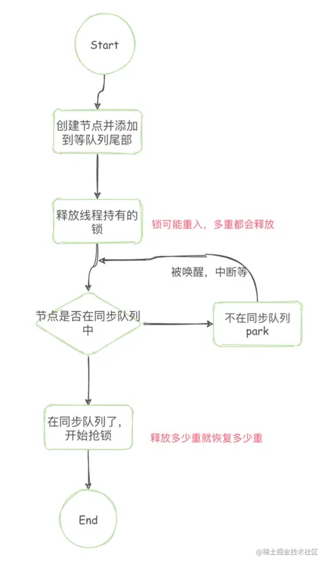 在此方法返回之前,此线程必须重新获取到锁。