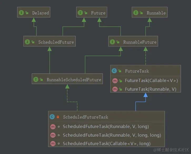 Runnable接口或Callable接口实现类都可以被ThreadPoolExecutor或ScheduledThreadPoolExecutor执行。两者的区别在于 Runnable 接口不会返回结果但是 Callable 接口可以返回结果。