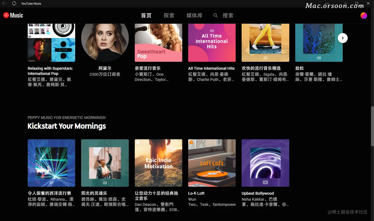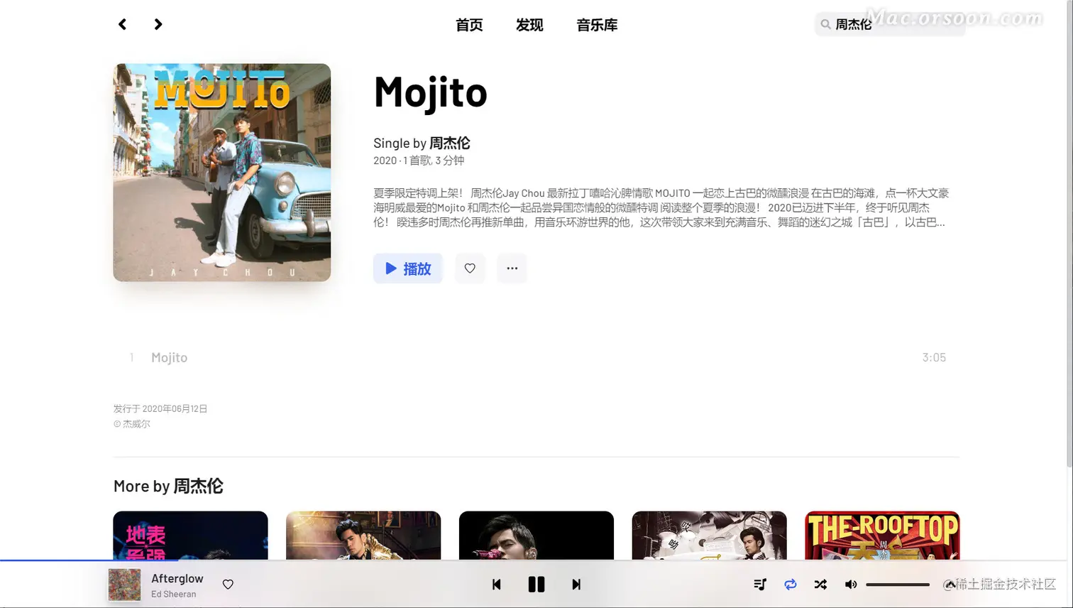 和 Apple Music 一样模块化的布局,系统一体性出色;不同歌单的推荐(默认还会推荐 Apple Music 歌单,可在设置中关闭);完全无冗余功能,支持系统级 Dark Mode/Light Mode 同步以及查看歌词等。