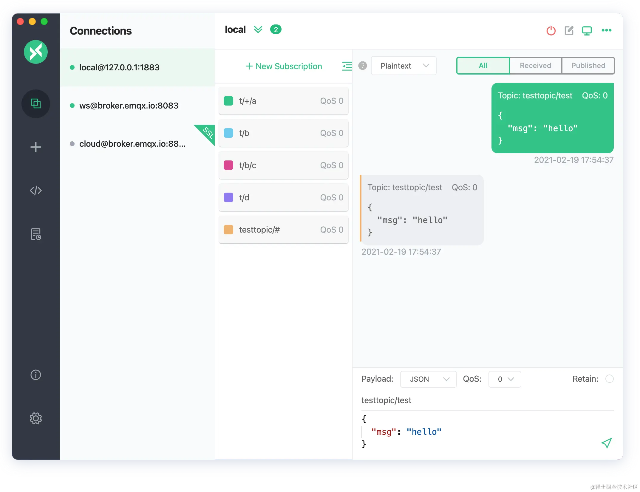 - 优化订阅的 Topic 项的样式和点击 Topic 项过滤消息时的效果