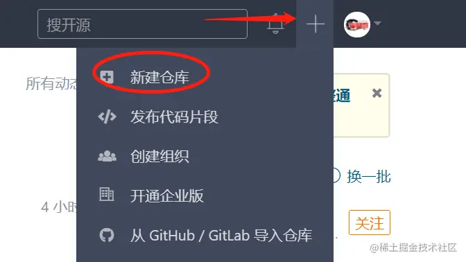 - 登录你的 Gitee 之后,创建一个新的仓库;