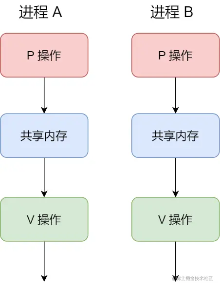 - 把对共享内存的访问置于 P 操作和 V 操作之间
