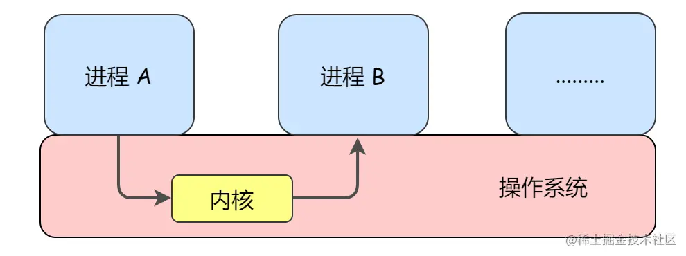 再来从操作系统层面直观的看一些进程通信:我们知道,为了保证安全,每个进程的用户地址空间都是独立的,一般而言一个进程不能直接访问另一个进程的地址空间,不过内核空间是每个进程都共享的,所以进程之间想要进行信息交换就必须通过内核。