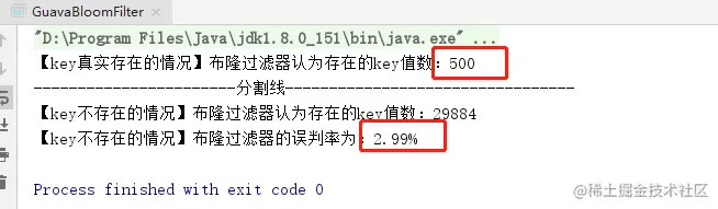 System.out.println("【key不存在的情况】布隆过滤器认为存在的key值数:" + mightContainNum2);