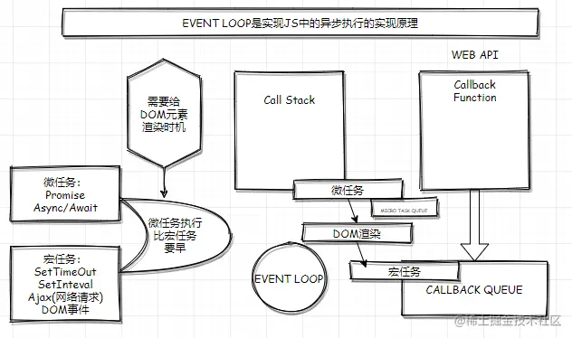 EventLoop是实现JS中的异步执行的实现原理。主要涉及微任务和宏任务。