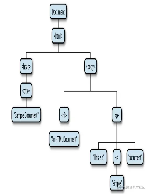 top-level 的 html 标签包含了 head 和 body 标签,head 又包含了 title 标签,body 包含了 h1 和 p 标签,p 又包含了 i 标签。