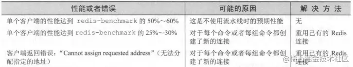 另一方面,如果你发现自己客户端的性能只有redis-benchmark所示性能的25%至30%,或者客户端向你返回了"Cannot assign requestedadres"(无法分配指定的地址)错误,那么你可能是不小心在每次发送命令时都创建了新的连接。