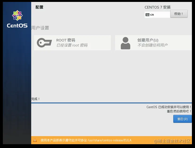 - 安装系统完成重启就可