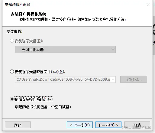 - 选择稍后安装也可以选择镜像,这里选择稍后安装