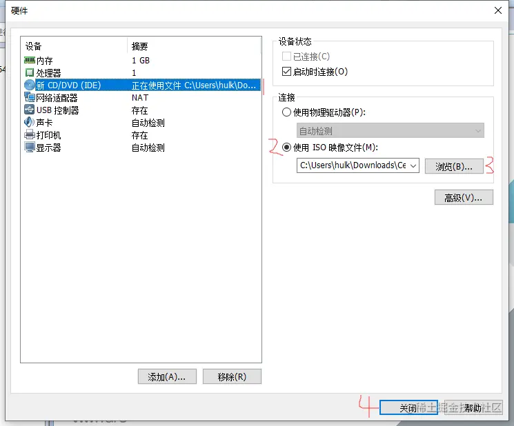 - 这里可以更改你的虚拟机配置,点击新dvd,在勾选使用iso映像文件,点击浏览查找并选择你的系统