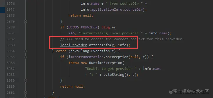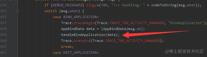 ActivityThread.attach 经过一系列调用会到 ApplicationThread.bindApplication 方法中,然后会发送一条 sendMessage(H.BIND_APPLICATION, data); 的 handler 消息,收到消息后,在 handleBindApplication 方法里,