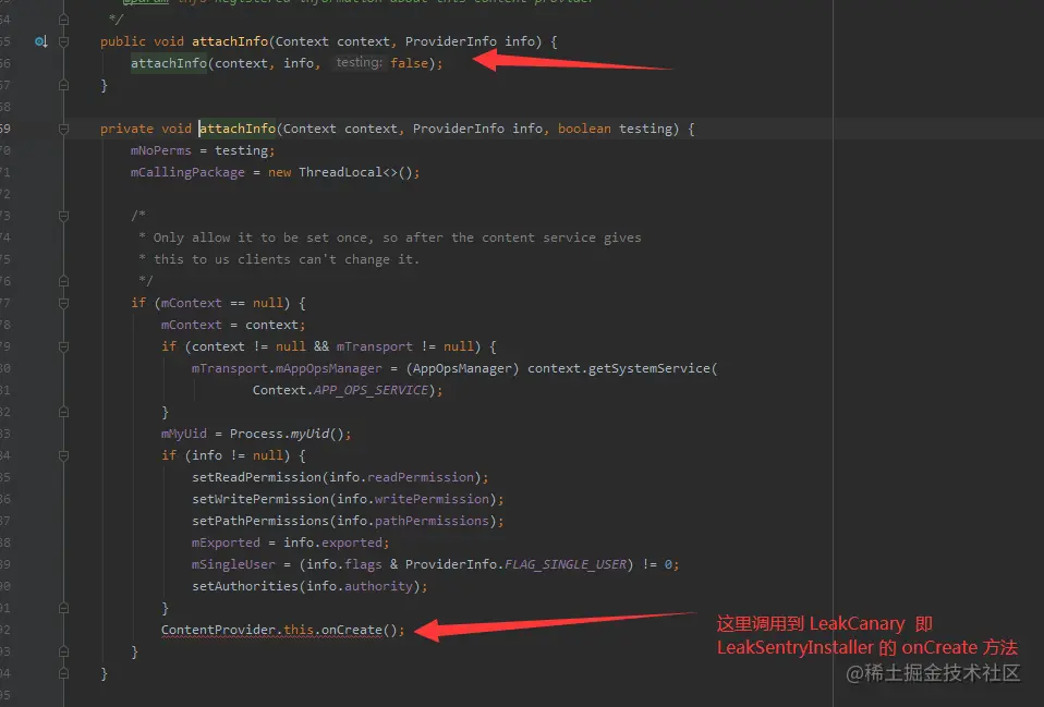 LeakCanary 提供了一个名为 LeakSentryInstaller 的 ContentProvider