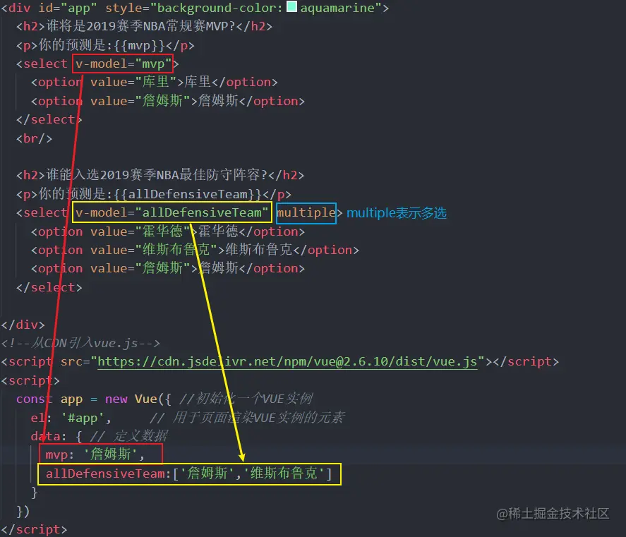 当需要应用多个 class 时, 可以使用数组语法 , 给:class 绑定一个数组,应用一个 class列表: