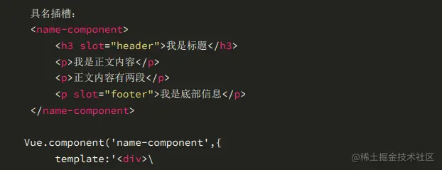 抽取共性,保留不同。将共性定义在组件里面,将差异暴露为插槽。这句话我们下文来重点理解。