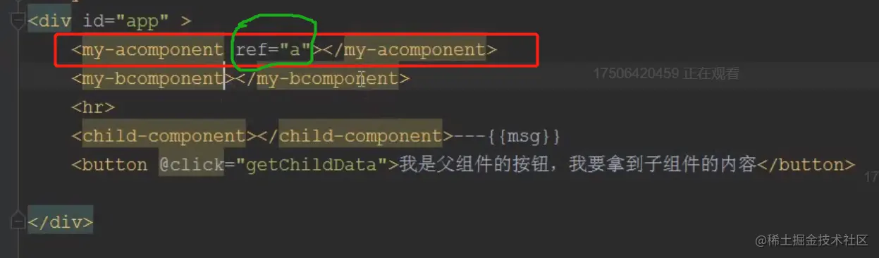 //用来拿子组件中的内容 ---- $refs