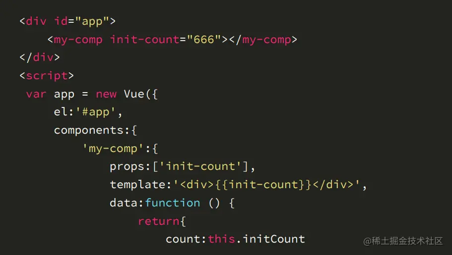 props来从父亲组件接收参数,注意,在props中定义的属性,都可以在组件中直接使用 props来自父级,而组件中datareturn的数据就是组件自己的数据,两种情况作用域就是组件本身,可以在template,computed,methods中直接使用props的值有两种,一种是字符串数组,一种是对象,本节先只讲数组- 可以使用