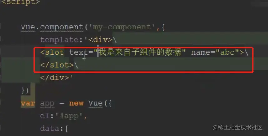 - 第一步现在子组件中定一个slot,这个slot里面写上需要传递的数据,