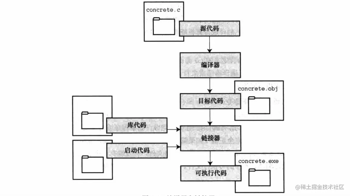 因此接下来需要链接器将目标文件和其他两部分合并成最终的可执行文件