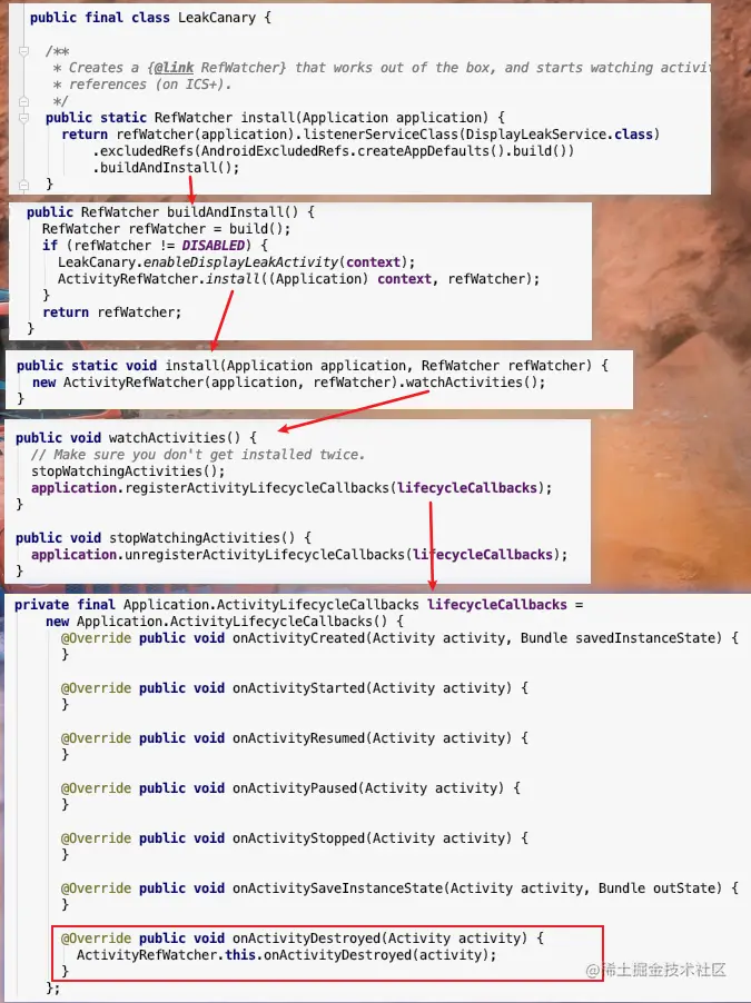 ActivityRefwatcher.this.onActivityDestroyed(activity); - onActivityDestroyed的内部实现就是