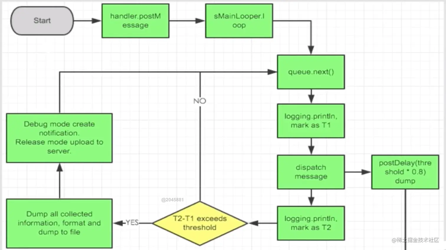 new ANRWatchDog().start(); - 继承于Thread,也就是说它也是一个线程